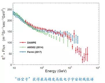 2015年12月17日,暗物质粒子探测卫星“悟空号”成功发射。这是迄今世界上观测能段范围最宽、能量分辨率最优的空间探测器,已成功获取国际上最高精度的电子宇宙射线能谱,并首次发现宇宙高能电子TeV拐点及其TeV以上的精细结构。
