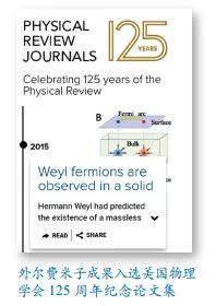 2015年,理论预言TaAs家族材料是外尔半金属,并首次实验证实了其中手性电子态——外尔费米子的存在。该研究被英国物理学会《物理世界》评为“2015年十大突破”,被美国物理学会《物理》评为“2015年八大亮点工作”。2018年1月,入选美国物理学会《物理评论》系列期刊诞生125周年纪念论文集,是收录的49项重要科学成就中唯一来自中国本土的工作。