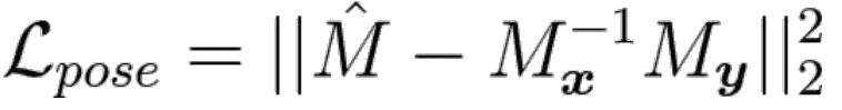 位姿回归的任务是根据输入图像得到位姿输出。采用特殊欧式群SE(3)中矩阵M作为最终的输出,该矩阵为图像间的位姿变换矩阵。网络结构中使用了指数变换层,可以把6维向量映射成4×4的矩阵M。位姿差异的损失函数为