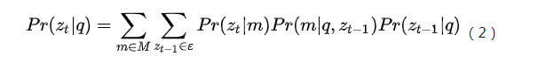 此外,理解上式所表示的模型的方法是,第二项检索的事第t跳的问题所请求的正确类型的提及,第一项则基于与