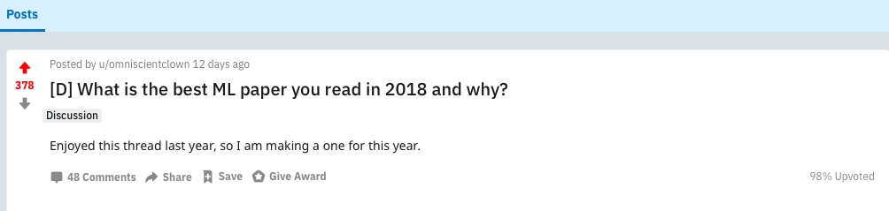 https://www.reddit.com/r/MachineLearning/comments/a6cbzm/d_what_is_the_best_ml_paper_you_read_in_2018_and/?sort=top