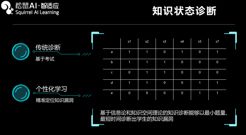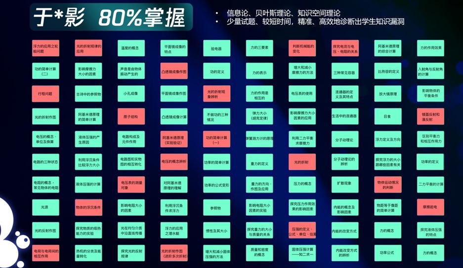 比如过去的一些历史和记录我们能够利用过来,给学生评测此刻的学习状态。每一个知识点上我们都能够评测出学生的学习状态。
