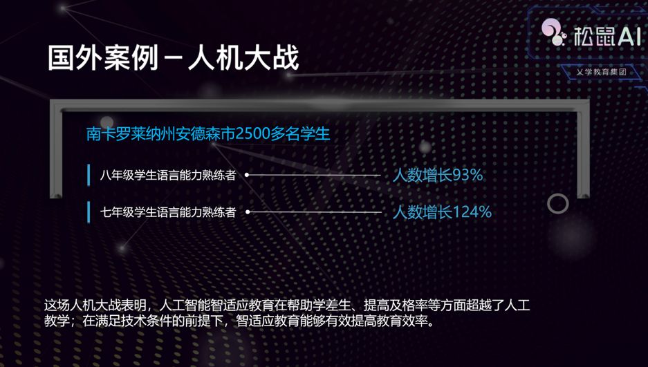 去年有三篇相关的学术论文,科学家和研究者们用科学权威的方法验证了智适应学习产品的有效性。2018 年上半年发表的一篇论文有效证明:使用人工智能产品 ALEKS 的学生课程通过率比未使用的要高 15 个百分点,也有论文研究证明人工智能是可以帮助学生提升成绩的。