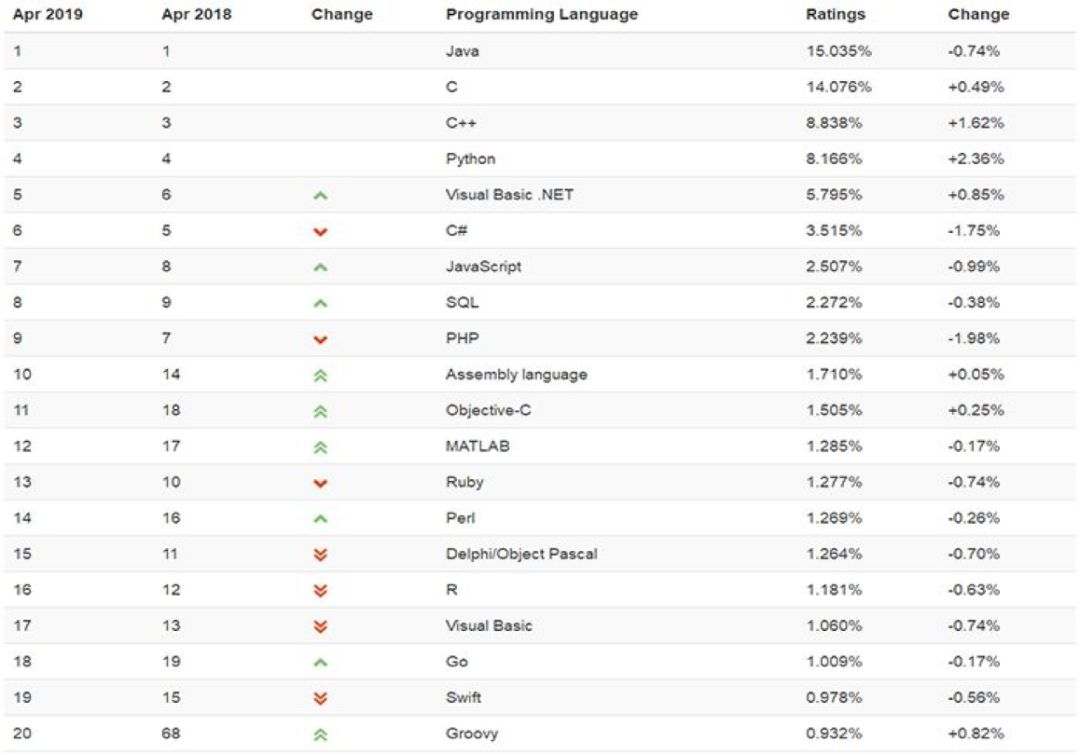 一年多排名下滑,铁打Java、C/C++,流水的编程语言。