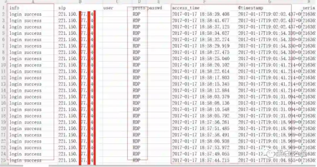 某厂商日志分析发现IP,但是日志记录的其中行为直接大量登陆内网,并无攻击过程,以及攻击手法,导致内网安全加固不知从何下手,并且不知道有什么后门需要清除,而且日志里攻击者IP为外国IP,不确定真实IP,还是代理IP。无法定位真正攻击者的地理位置。