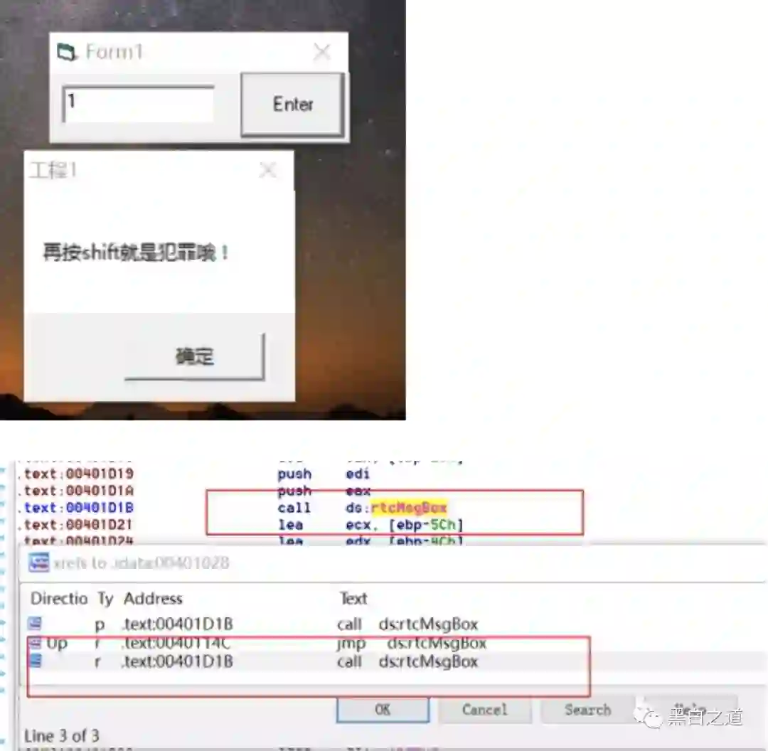 特征为密码输入错误,呼出msgbox