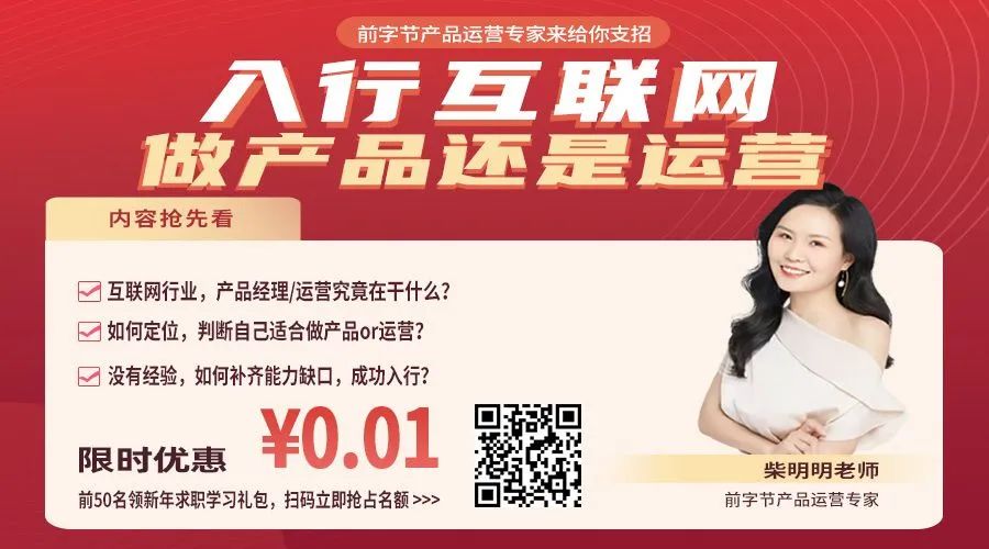 为了帮助更多纠结中的同学,了解“产品”和“运营”该如何选择?1月8日星期六14:30-15:30,【前字节产品运营专家@柴明明老师】,1小时直播分享她眼中的“产品”和“运营”,帮助你更好的认识两者的联系与区别,判断自己到底是适合产品还是运营~