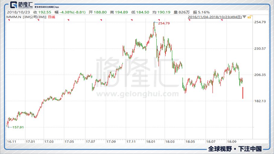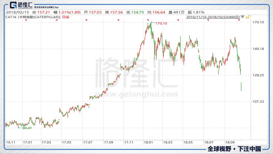 前天晚上美国的制造业巨头卡特彼勒发布三季度业绩,Q3业绩很好,但是给了悲观指引,结果股价扑街了7个多点。另外还有3M公司也是业绩不及预期,跌了4个多点。