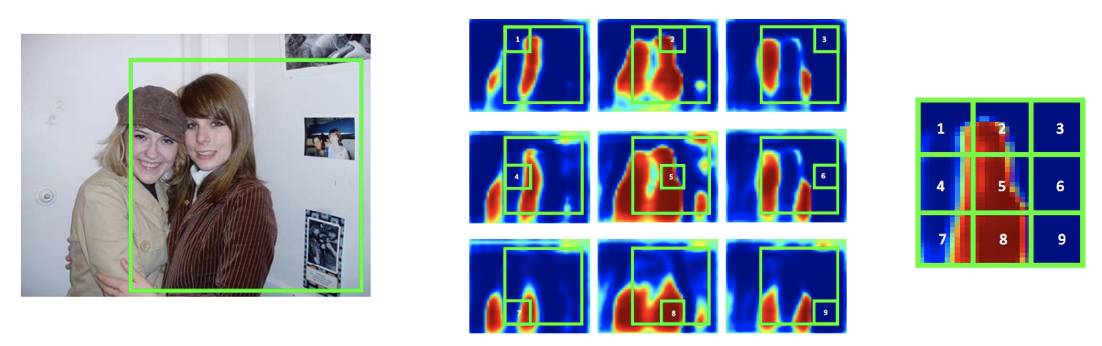 打个比喻,假设本来我们只有一个 person 类别,两个人如果肩并肩紧挨着站在一起,则无法区分彼此。如果我们划分了左手,右手,中心躯干等三个类别,用三张独立的 feature map 代表。那么在每张 feature map 上两个人都是可区分的。当我们需要判断某个候选框内有没有人时,只需要对应的去左手,右手,中心躯干的 feature map 上分别去对应的区域拼在一起,看能不能拼成一个完整的人体即可。