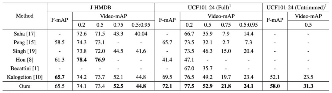 ▲ 表3:在J-HMDB和UCF101上,TACNet与当前最佳方法的结果对比