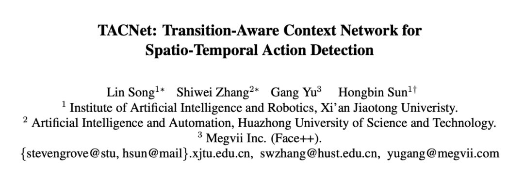 论文名称:TACNet: Transition-Aware Context Network for Spatio-Temporal Action Detection