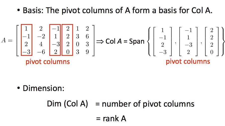 先导元素所在的列,在原矩阵中被称为主列(pivot columns),这些列是线性无关的,其他列可以有主列的线性组合得到。
