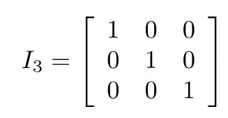 单位矩阵Identity matrix:必须是方阵,对角线元素为1,其余为0,用In表示n*n的单位矩阵。