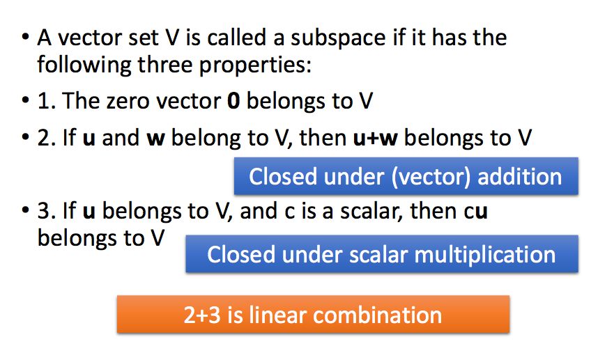 对于一个向量集S,其向量的所有线性组合组成的向量集V,称为Span(S),也被称为S张成的空间。