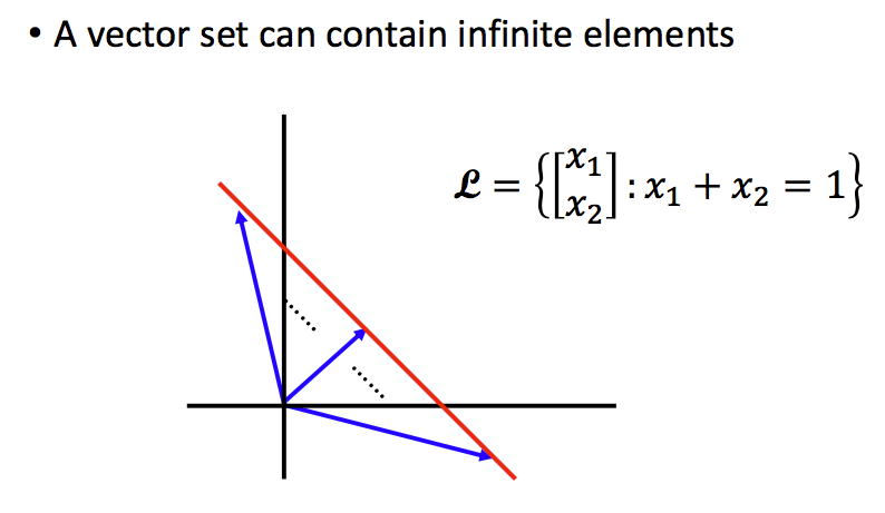 如果S中包含一个非零向量,那么其张成的空间是一条直线: