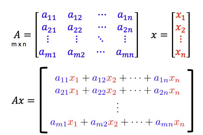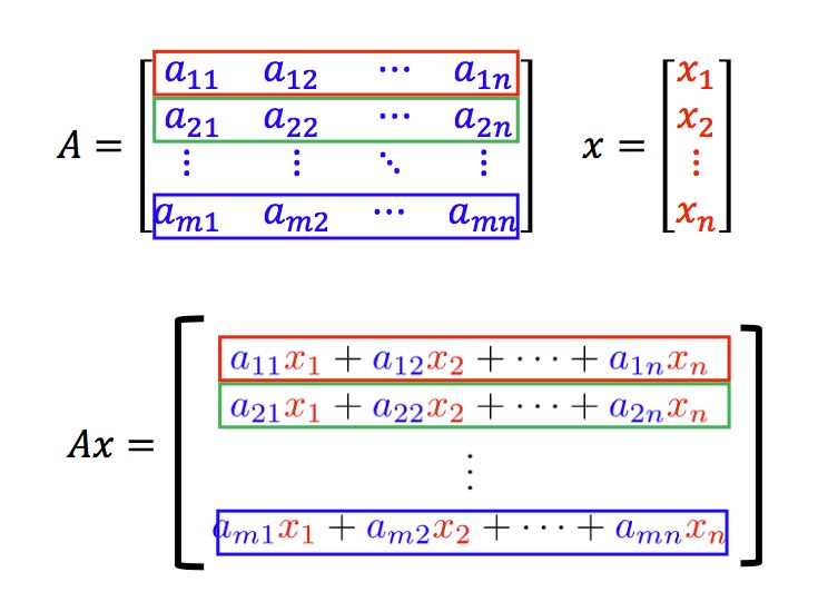 因此,无论从行角度还是列角度,矩阵A的列数要与向量x的维数相同。