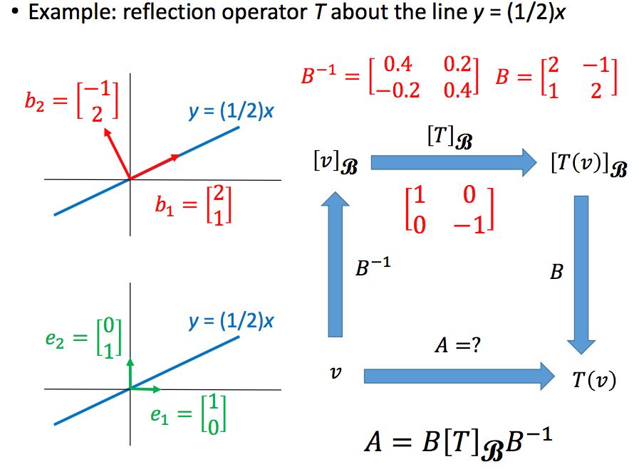 所以我们在直角坐标系下的这个变换矩阵A也就找到了,此时我们可以称两个坐标系下的变换矩阵是相似矩阵(Similar matrices):