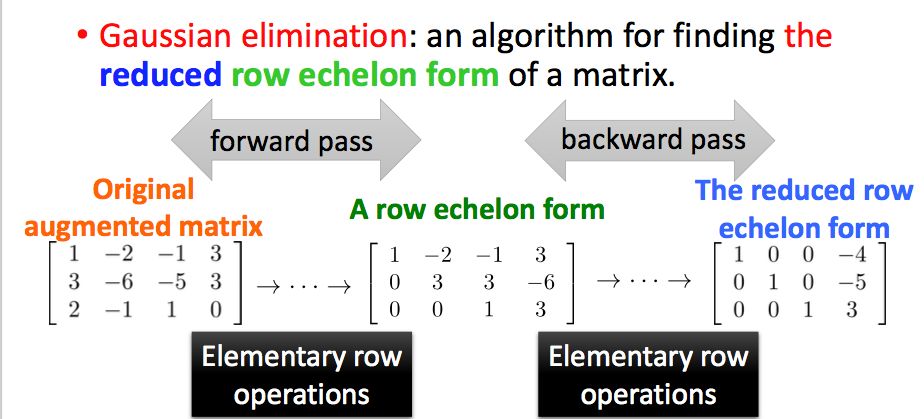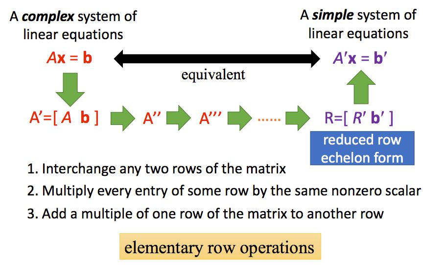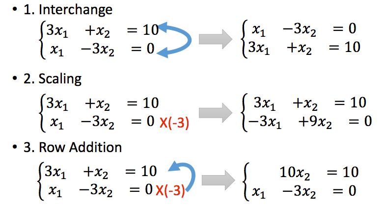 上面的三种操作我们也称为初等行变换(elementary row operations)