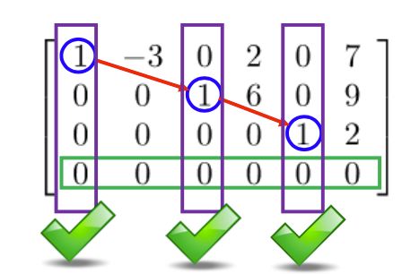 在上述两个条件的基础上,如果先导元素所在的列都是标准向量的话,那么它就是简化行阶梯形式Reduced Row Echelon Form: