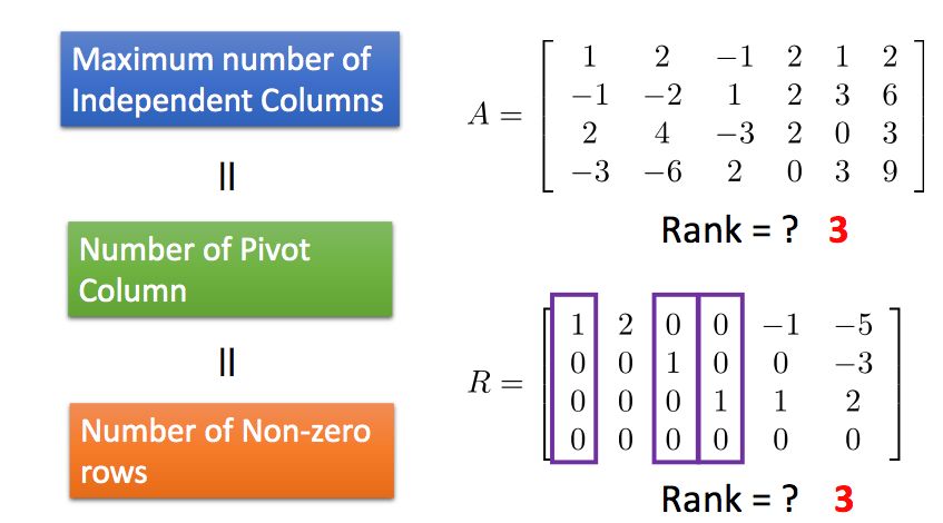 矩阵的秩(Rank)定义为线性无关的列的最大数目: