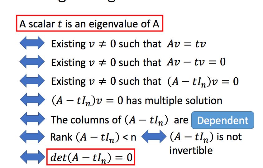 如果一个标量是矩阵A的特征值,那么他会满足下面所有的条件: