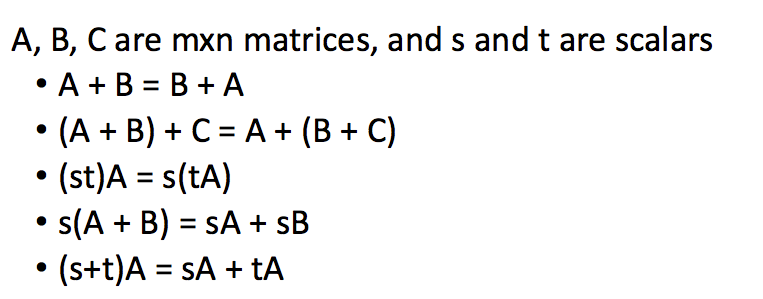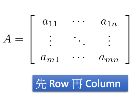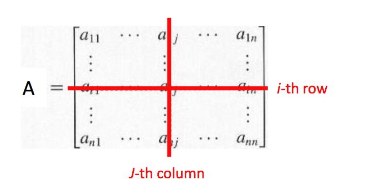 如果矩阵有m行和n列,我们就说矩阵的大小为m*n,如果m=n,我们称为方阵(square matrix)。