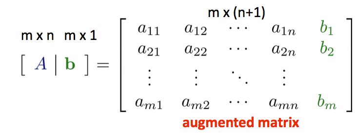 这里我们介绍一下增广矩阵(Augmented Matrix),即将A和b进行横向拼接: