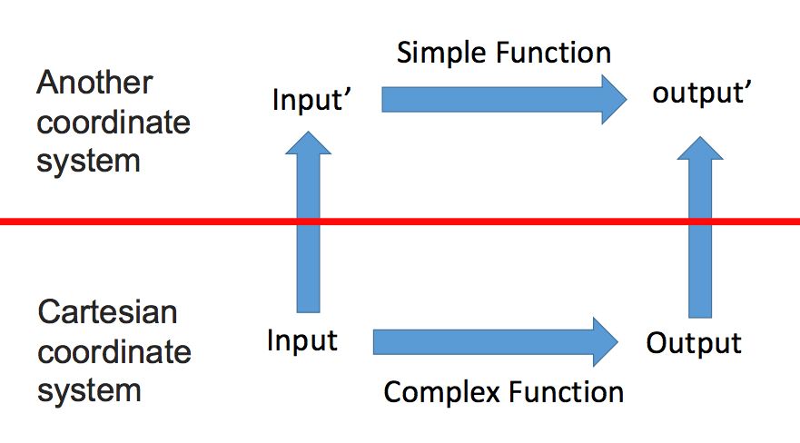 我们之前所说的线性方程,都是相对于直角坐标系所说的,有时候有些问题直接在直角坐标系下进行求解并不容易,但是转换到另一坐标系下就会变得十分简单,这就得到了通过坐标系转换来求解问题的思路: