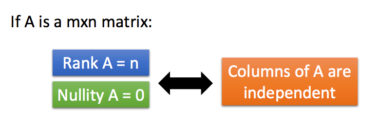 也就是说,如果一个m*n的矩阵,其秩为n的话,它的列是线性无关的: