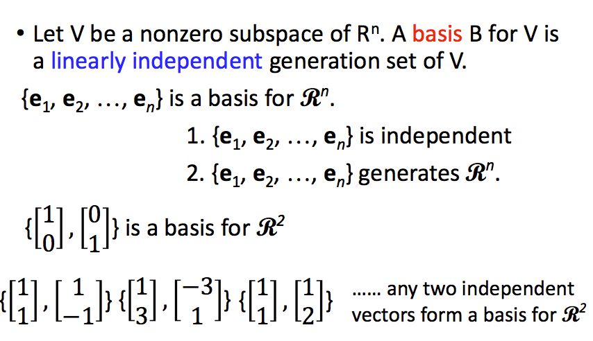 因为正交集/标准正交集中的向量是线性无关的,那么如果一个子空间的基是正交/标准正交的,那么这个基被称为正交基(Orthogonal Basis)/标准正交基(Orthonormal Basis)。