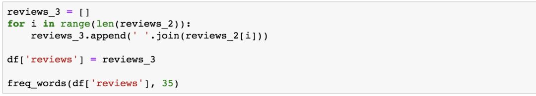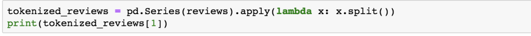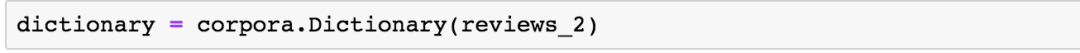 然后,我们将使用上面准备的字典将评论列表(reviews_2)转换为文档术语矩阵。