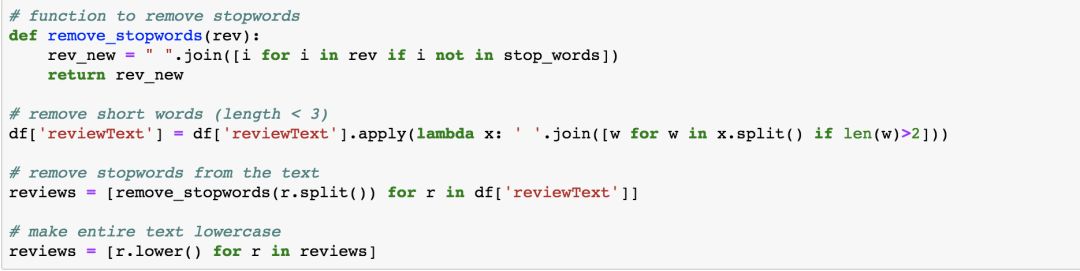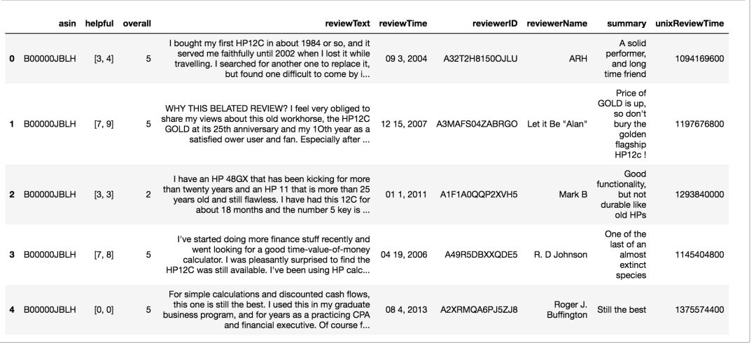 在我们的分析当中,我们将使用到“reviewText”即评论的文本这一列的数据。