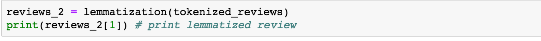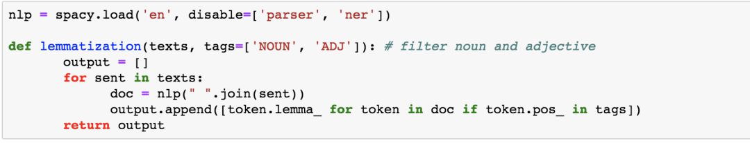 我们使用spacy库中的词形还原来进一步消除文本中的噪音。