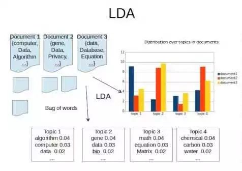 LDA(Latent Dirichlet Allocation)是一种文档主题生成模型。它是一种非监督机器学习技术,可以用来识别大规模文档集(document collection)或语料库(corpus)中潜藏的主题信息。它采用了词袋(bag of words)的方法,这种方法将每一篇文档视为一个词频向量,从而将文本信息转化为了易于建模的数字信息。