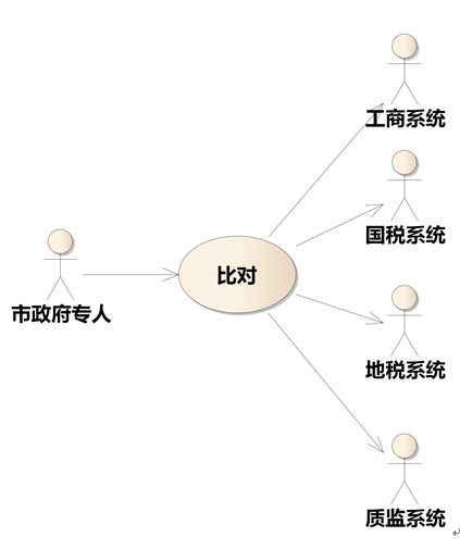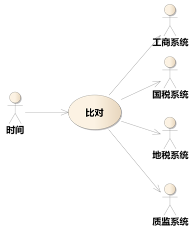 2、某城市目前工商、国税、地税、质监部门都有自己的系统,但相互信息不联通,经常出现漏管户和偷逃税情况。市政府打算开发一个基础信息交换系统,系统的目标是通过各部门的企业数据之间的比对,发现数据差异,减少漏管户,防止偷逃税。工商、国税、地税、质监各部门人员使用自己的系统录入企业数据,每个月末,市政府专人会给基础信息交换系统发送一个比对命令,基础信息交换系统会从各部门业务系统把各部门本月的企业数据导入,比对,然后给各部门业务系统返回结果。请问:以下哪些用例属于“基础信息交换系统”的用例集?