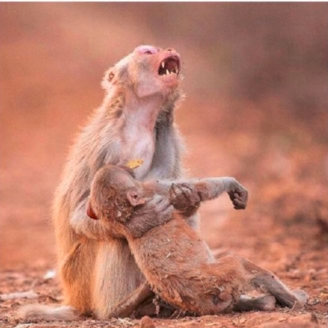 下面这张猴子怀抱死去孩子的图片,完全看不出任何热带雨林火灾的痕迹,却在网络上得到了广泛传播。这张图由摄影师Avinash Lodhi拍摄于2016年4月,发生地点在印度的贾巴尔普尔。