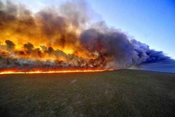 下面这张所谓的“现场照片”,拍摄的亚马孙雨林边缘的牧场火灾。它发生的时间是2014年,由摄影师Mario Tama拍摄。