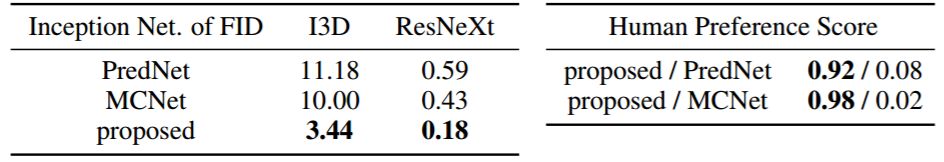 表 3:在 Cityscapes 数据集上未来视频预测方法的对比结果。