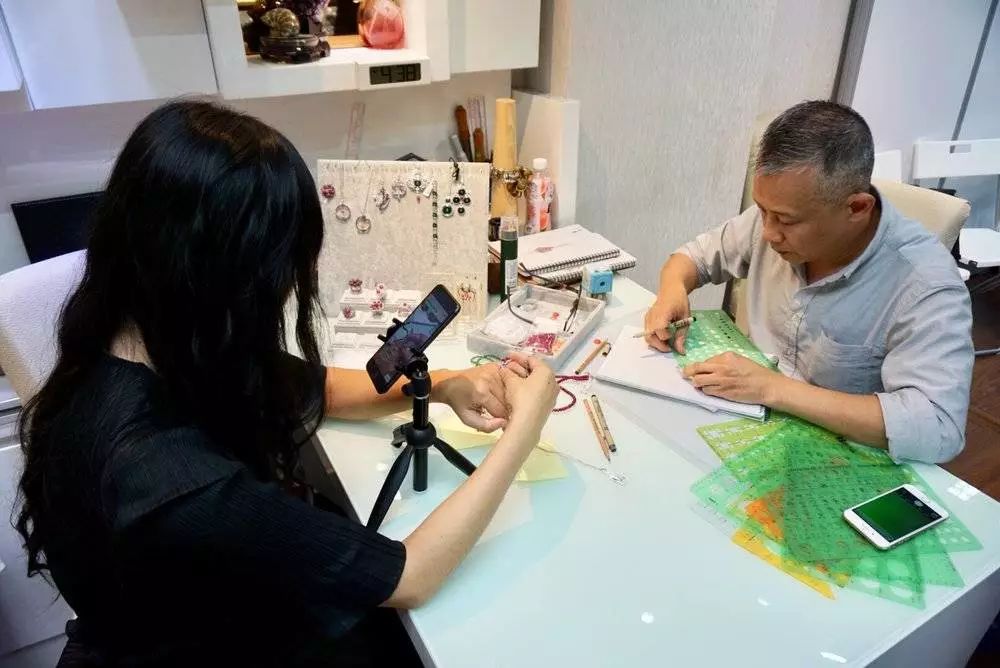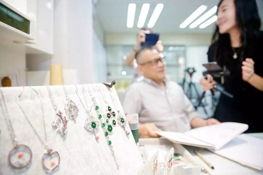 “宝宝们看一下,我现在在位于中环的方会长的工作室里,这个是这周新设计制作出来的项链哦。要戴上看看是嘛?好的哦。”