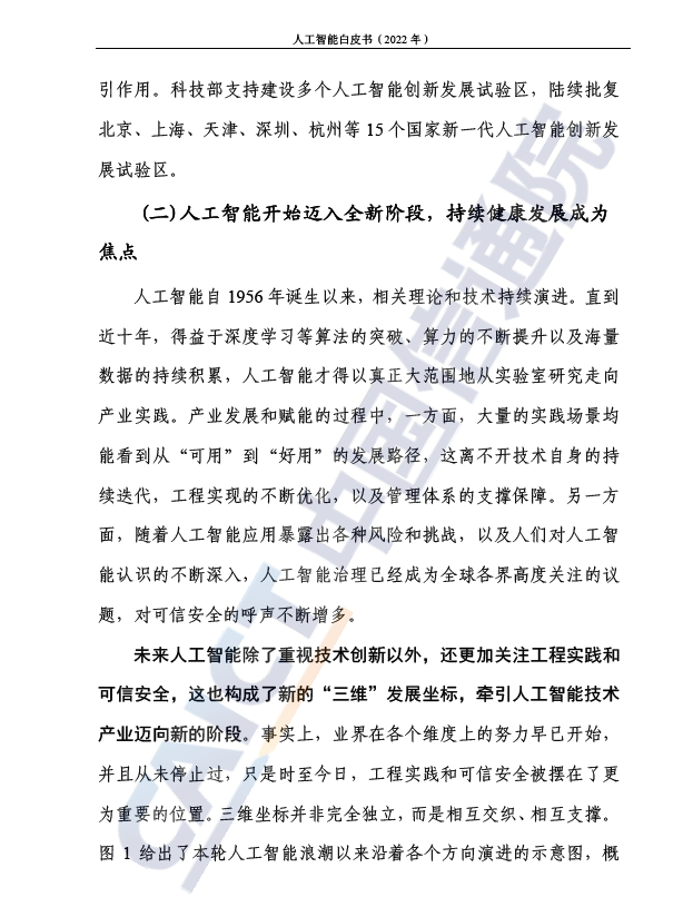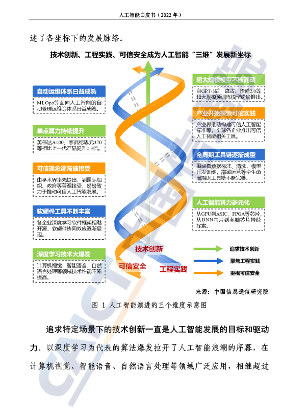 白皮书认为,未来人工智能除了重视技术创新以外,还更加关注工程实践和可信安全,这也构成了新的“三维”发展坐标,牵引人工智能技术产业迈向新的阶段。