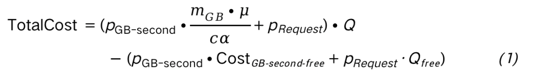 为方便计算,用表示函数的资源规格,单位为GB。例如,对于128MB规格的函数,其