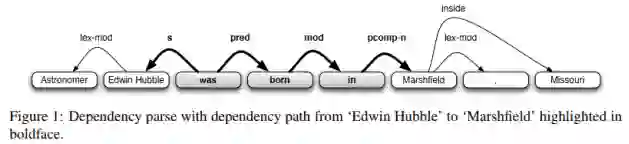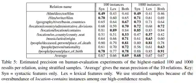 此外,句法特征在远程监督中比词法特征更有效,尤其对于依存句法结构比较短而实体对之间的词语非常多的句子。