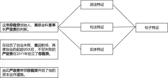 于是可以从这几个句子中提取文本特征,拼接成一个向量,作为这种关系的一个样本的特征向量,用于训练分类器。