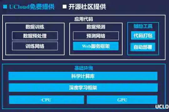 为了简化应用代码的部署和构建过程,UCloud 提供了一些开源的工具和框架(上图蓝色框架的所有内容),包括辅助工具里面的代码打包和自动部署工具,开发者也可以在 UCloud 提供的 SDK 里面免费下载使用,省去许多部署烦恼。