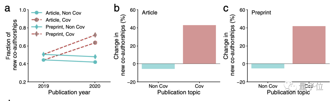 而在多人合著的数量上,王大顺团队基于一个大规模的出版数据集,对2019年和2020年发表的大约950万篇文章和预印本进行了分析研究。