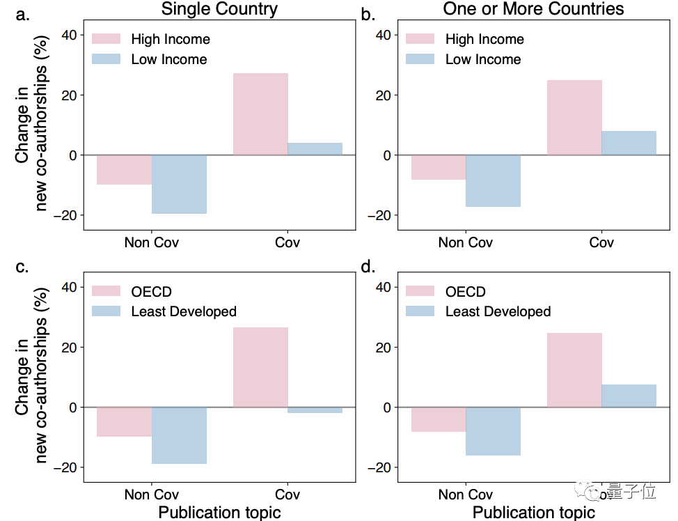 上述这些数据主要来自于美国和欧洲地区,而低收入和发展中国家的合著数量下降幅度更大:
