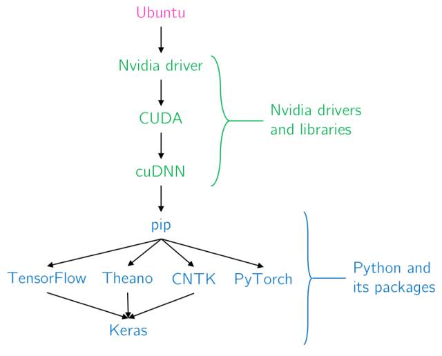 4 种驱动和库(GPU 驱动、CUDA、cuDNN 和 pip)
