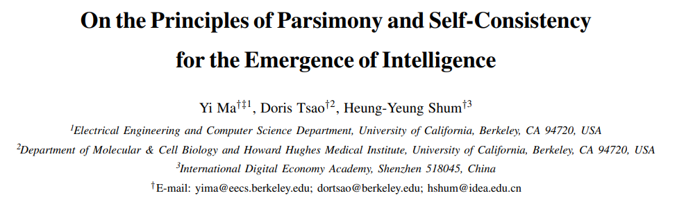7月12日,人工智能领域的三位知名华人科学家马毅、曹颖与沈向洋便联名在arXiv上发表了一篇文章,“On the Principles of Parsimony and Self-Consistency for the Emergence of Intelligence”,提出了一个理解深度网络的新框架:压缩闭环转录(compressive closed-loop transcription)。