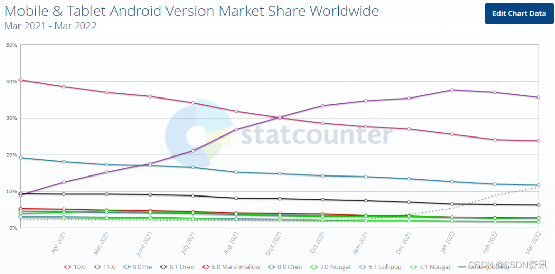 作为世界上最流行的移动操作系统,在连续发布两个开发者预览版后,Android 13 首个Beta版正式发布。而就各个版本的市场使用情况来说,Android 11是最普及的一个版本,其次是Android 10。