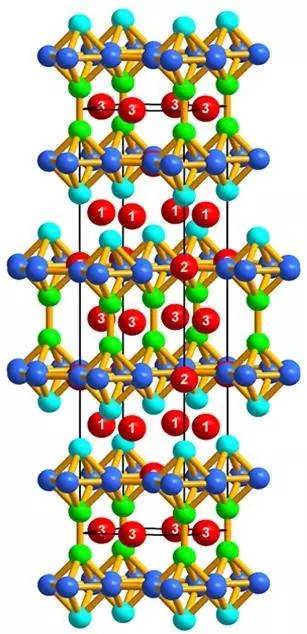 红色的球代表钡,其他绿色,青色和蓝色的位置可以被锌和镓占据。